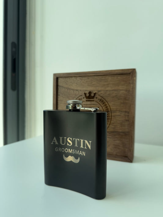 Personalized Black Flask Set | Groomsman gift