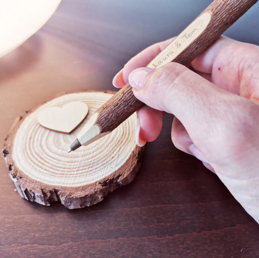 Our wooden hearts are the perfect size for your guests to write their names, wishes, and short messages on. They're around 1.3 – 1.4 inches (3 – 3.5 cm) in diameter.