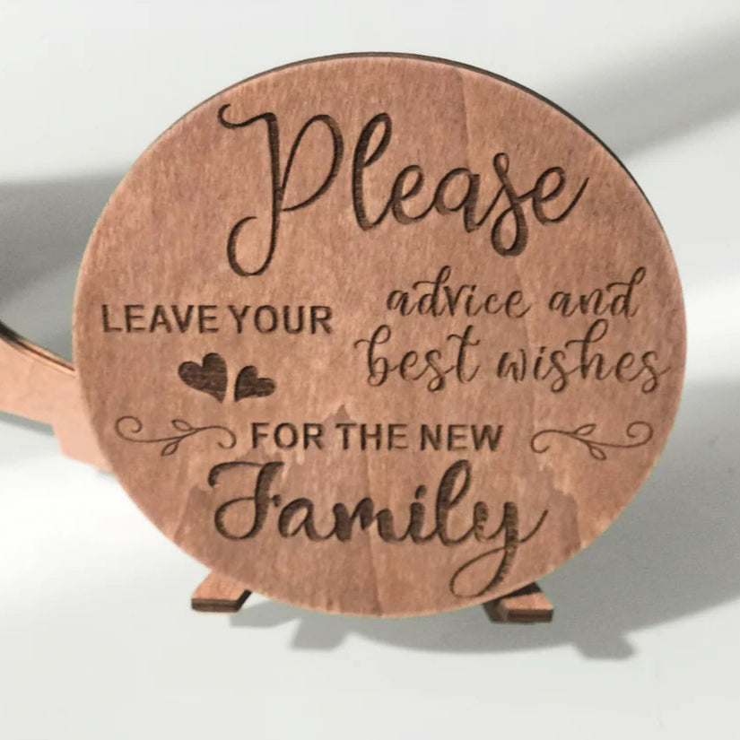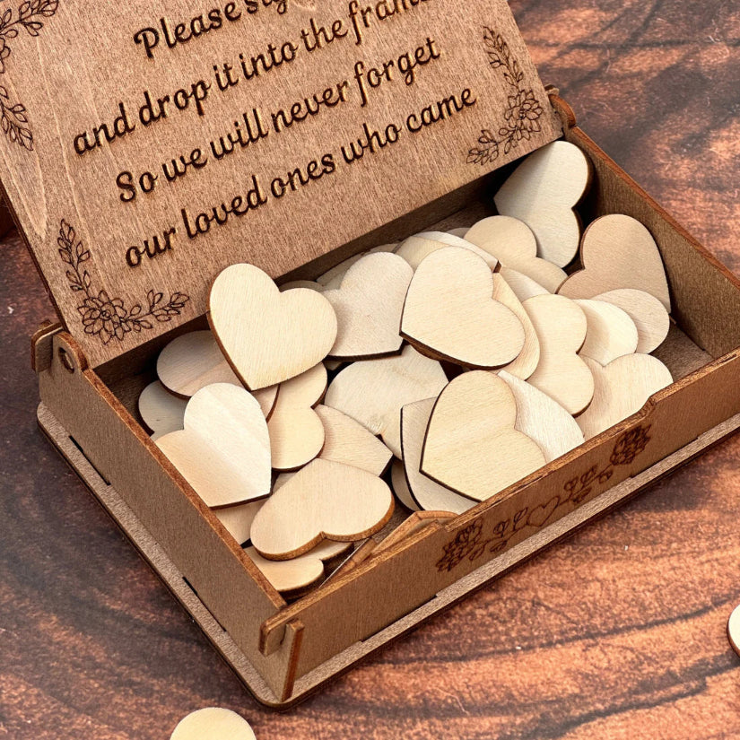 Your guests will write their loving thoughts and bits of advice on the wooden hearts.