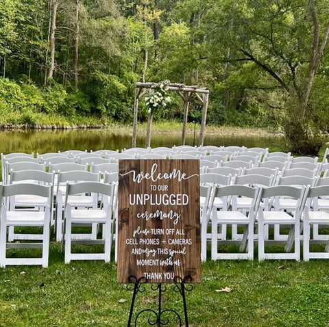 From the heartfelt message to the beautiful wood finish, this unplugged ceremony sign is a charming addition to your wedding décor. Ready to display and ready to impress, it’s a keepsake that sets the tone for an unforgettable day.