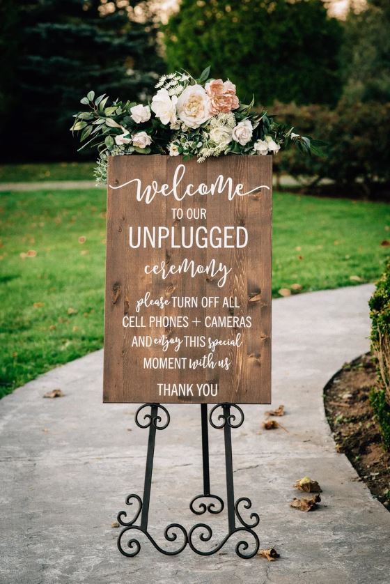 Let the love take center stage. As your guests watch you walk toward forever, this sign gently reminds them to soak in the moment—no screens, just smiles. It's a meaningful way to begin your celebration with intention and presence.